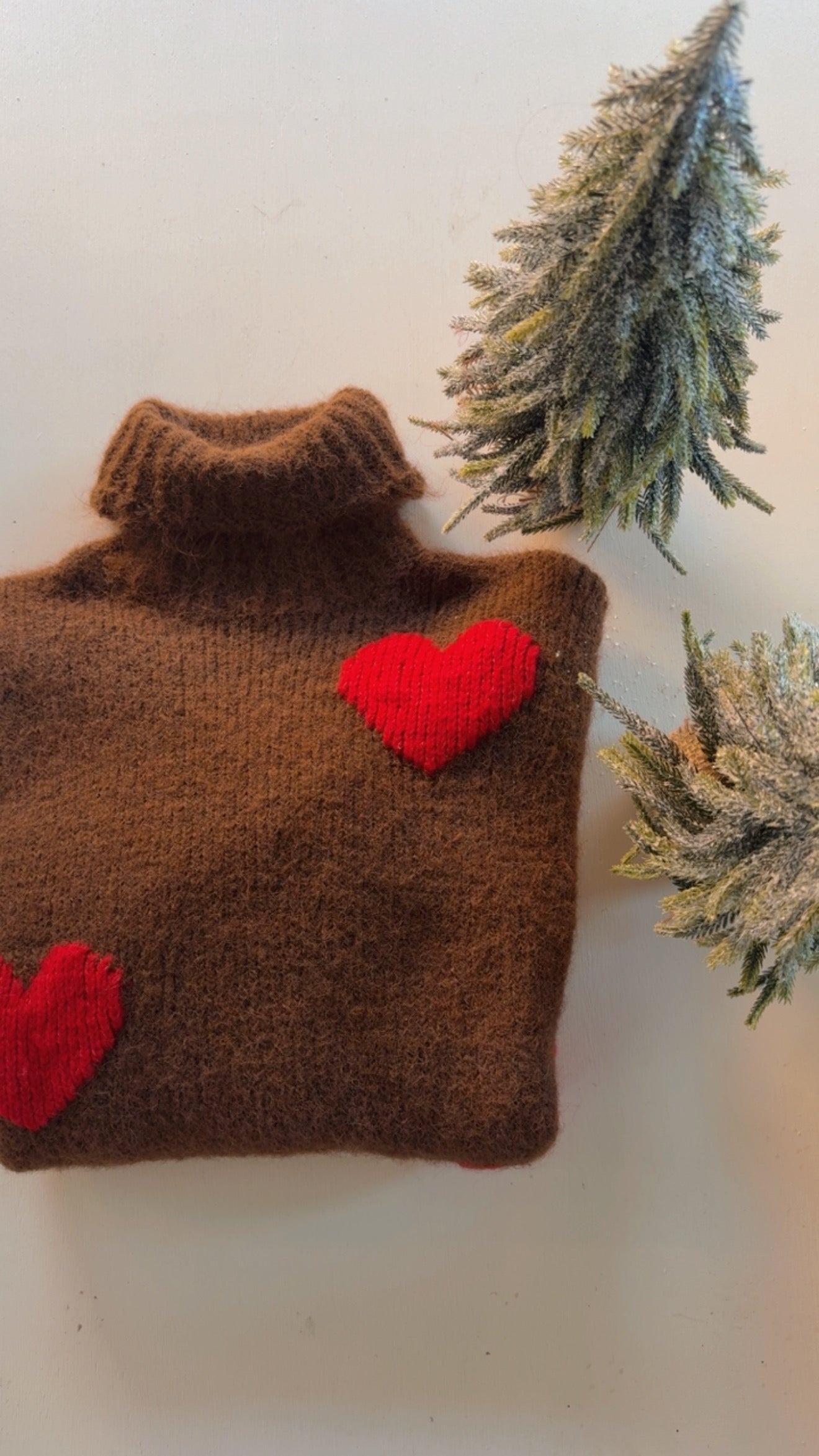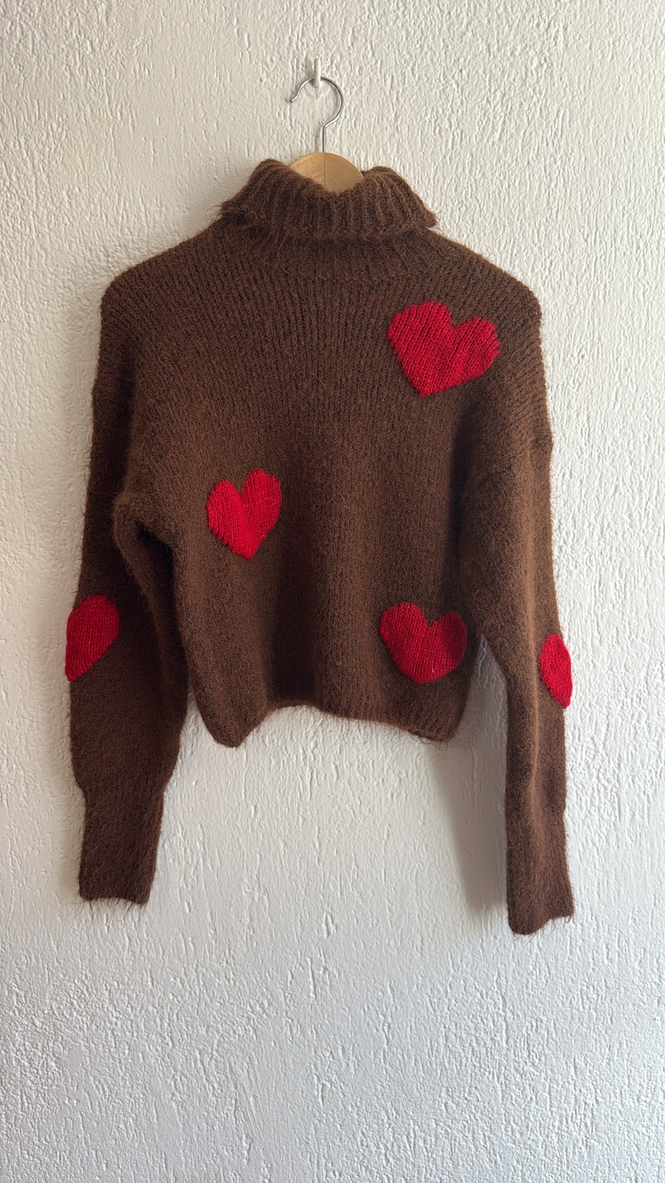 Dolcevita modello cropped con cuori rossi.