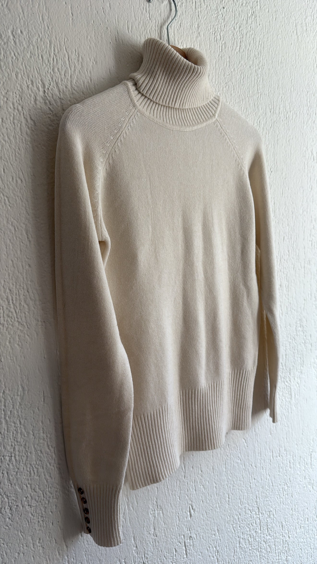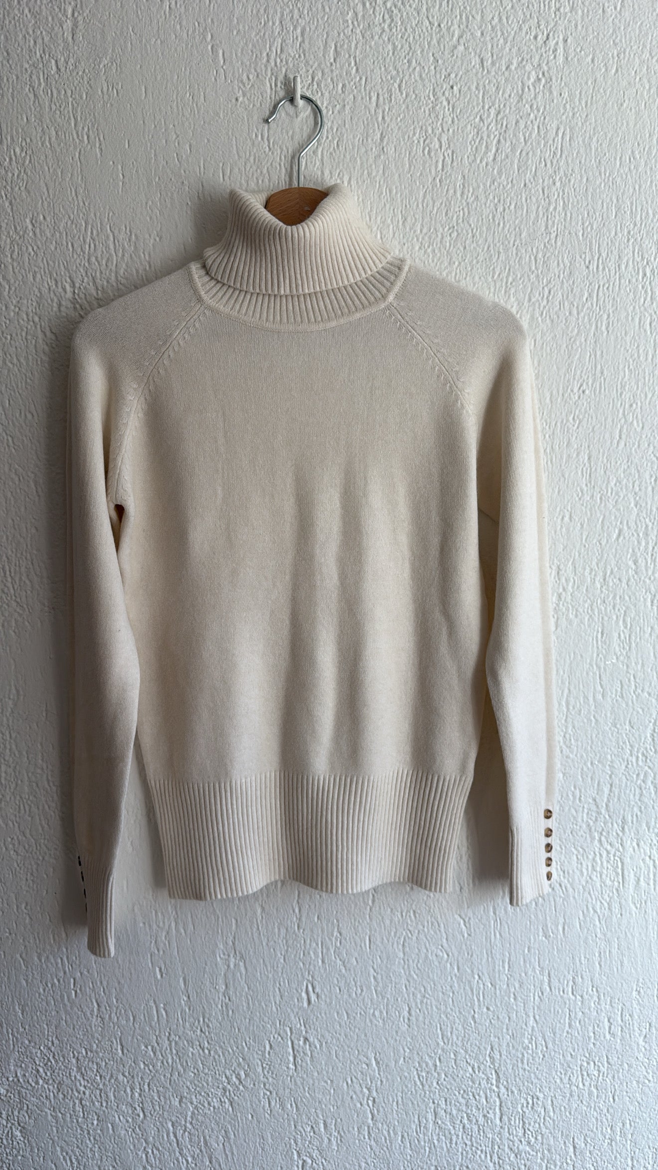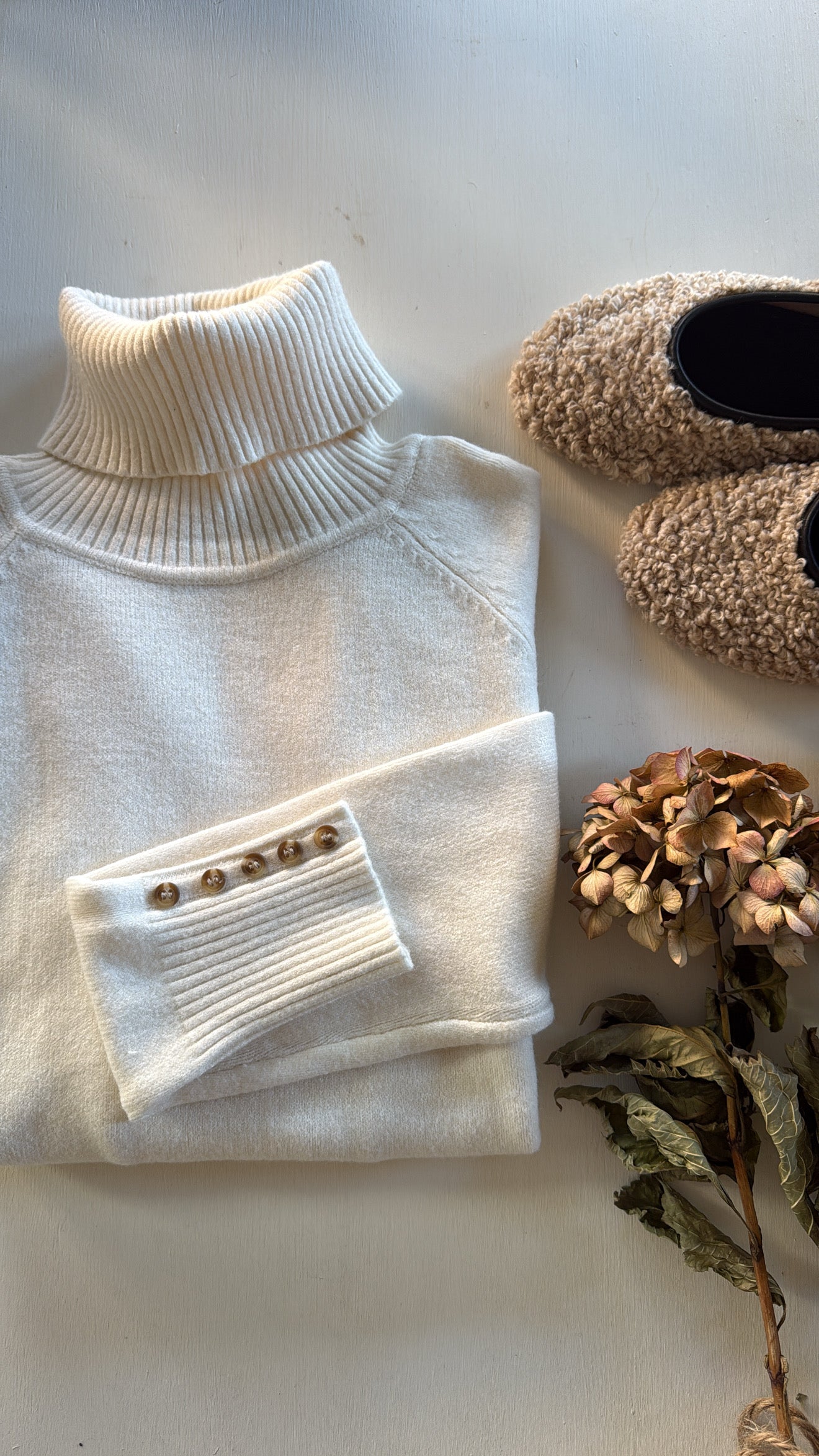 Una fila di bottoncini sulle maniche effetto simil legno.