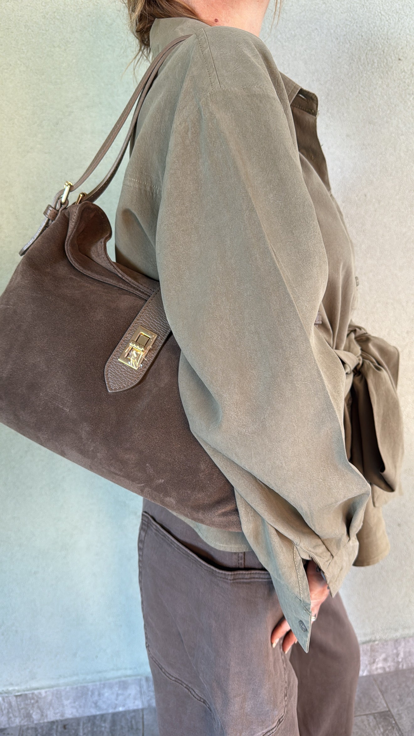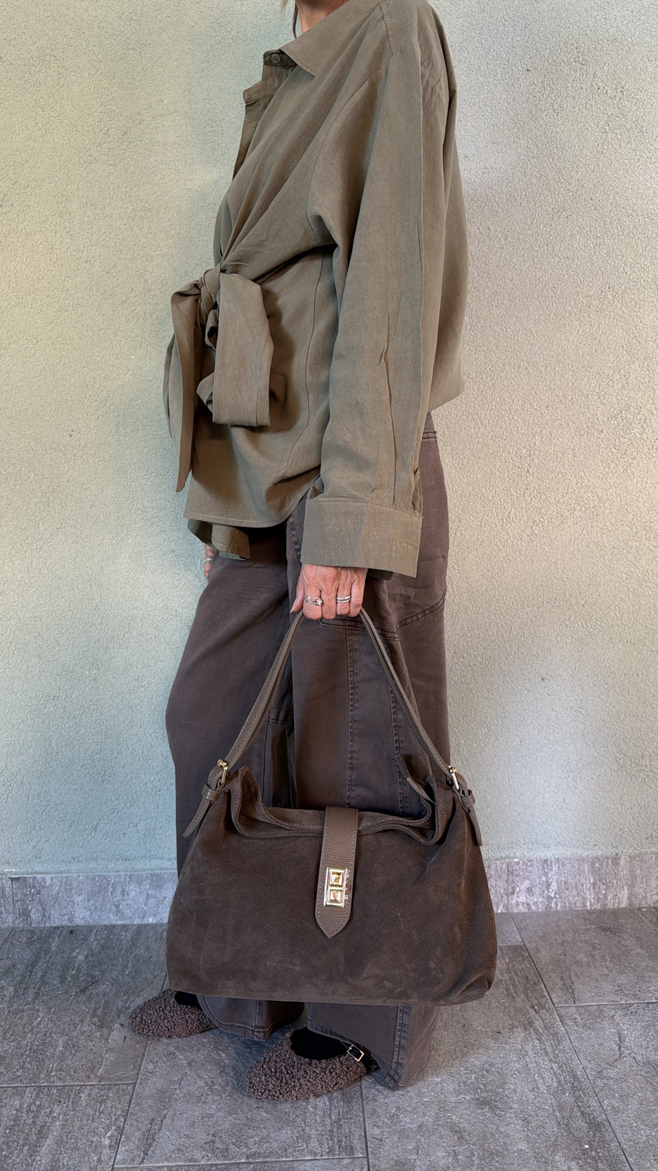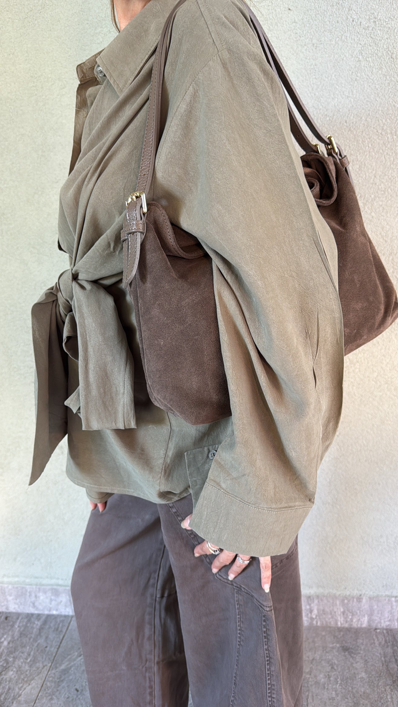 HOLLY: parola chiave: ORIGINALITA’. Lei non è una semplice camicia, ma potete utilizzarla come una “giacca” per la forma e l’allacciatura particolarissima. Allacciatura sul davanti, manica lunga. Taglia unica, vestibilitá ampia. Composizione: 100% lyocell (tessuto naturale ricavato dall’eucalipto)