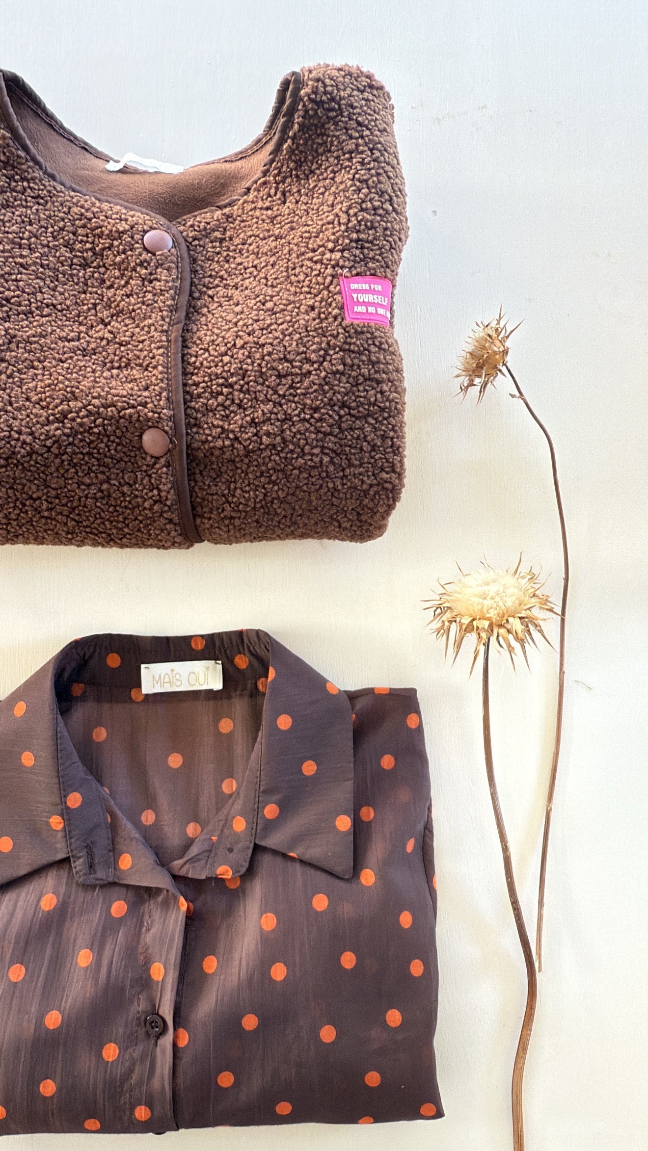 Daisy: in tessuto naturale con pois. Manica lunga. Vestibilita taglia unica. Composizione: 85% tencel, 15% poliestere.