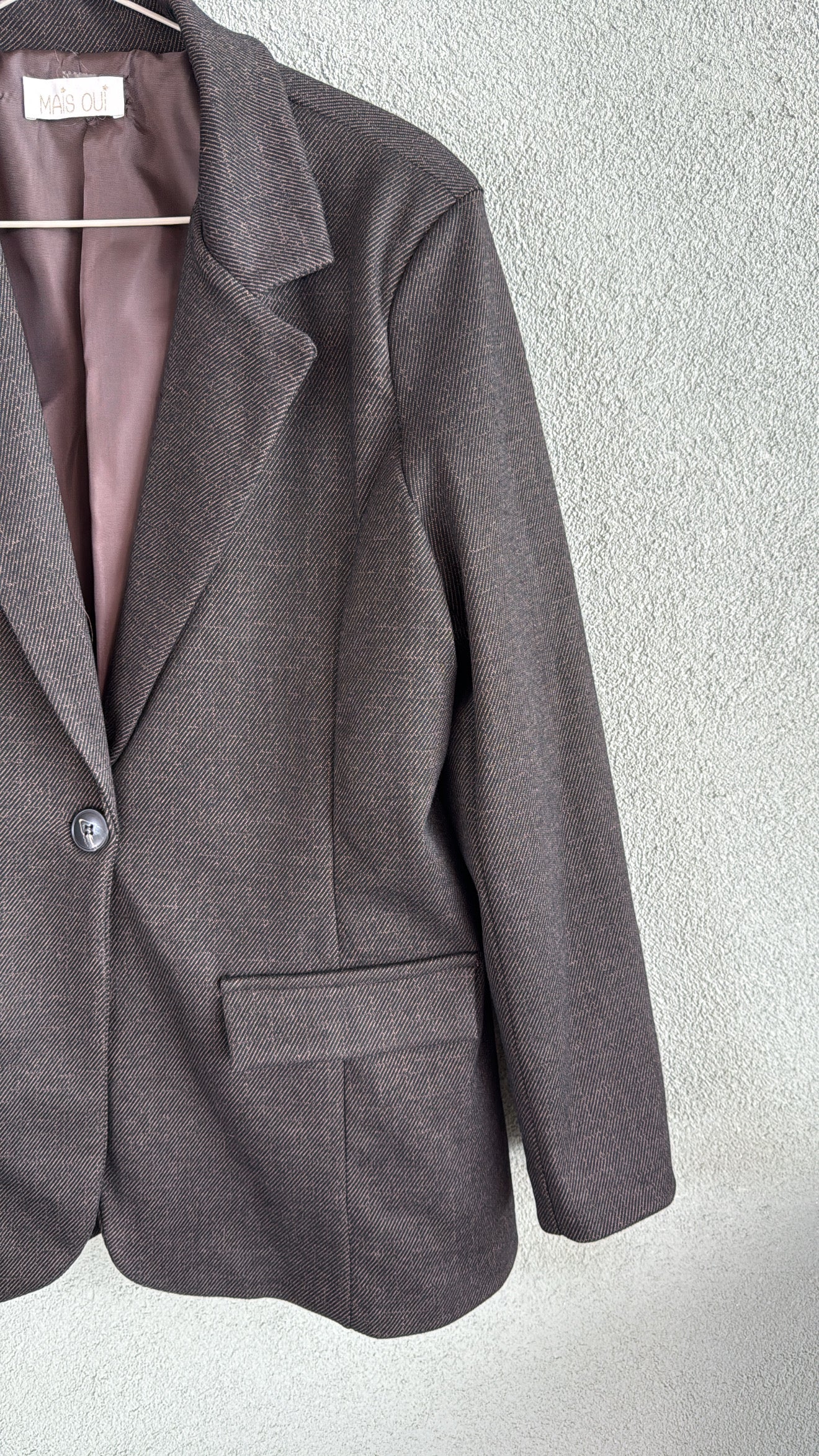 Il bottone singolo e le tasche con patta le conferiscono uno stile pulito e contemporaneo, perfetto sia per l’ufficio che per un look casual-chic.