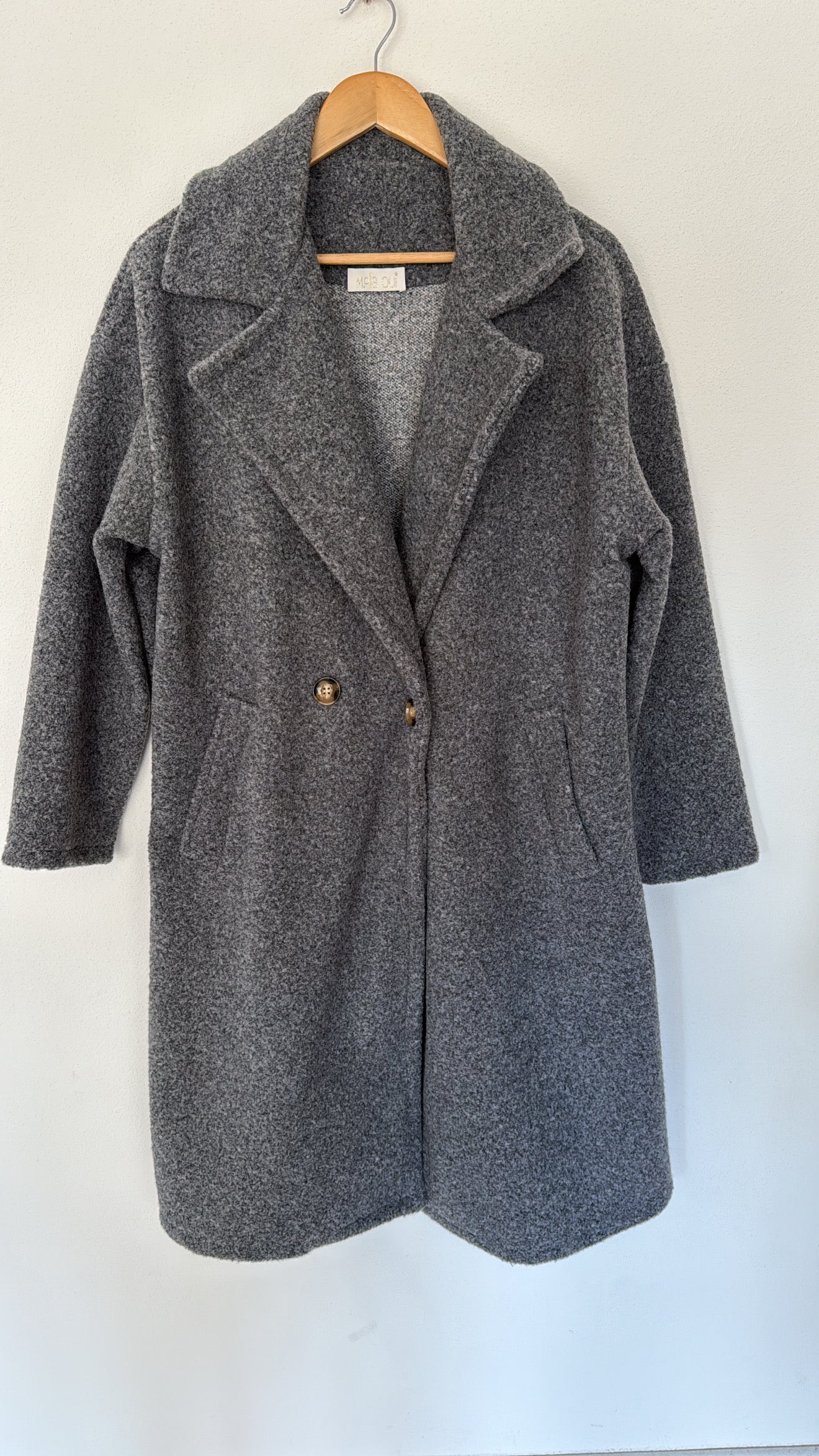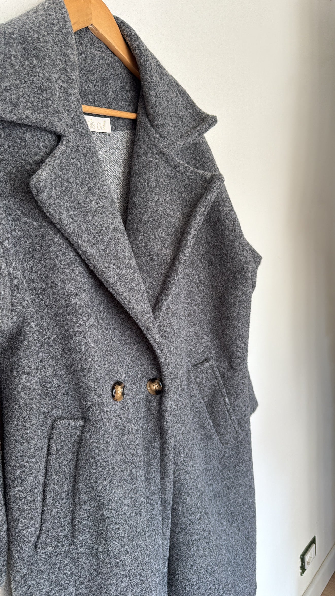 Il dettaglio del finto doppio petto — due bottoni visibili ma chiusura interna a un solo bottone — gli dona carattere senza appesantire la silhouette, mantenendo un aspetto pulito e sofisticato.