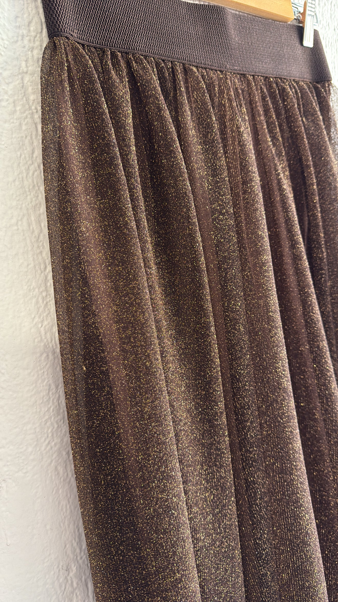 Tulle color cioccolato glitterato oro.