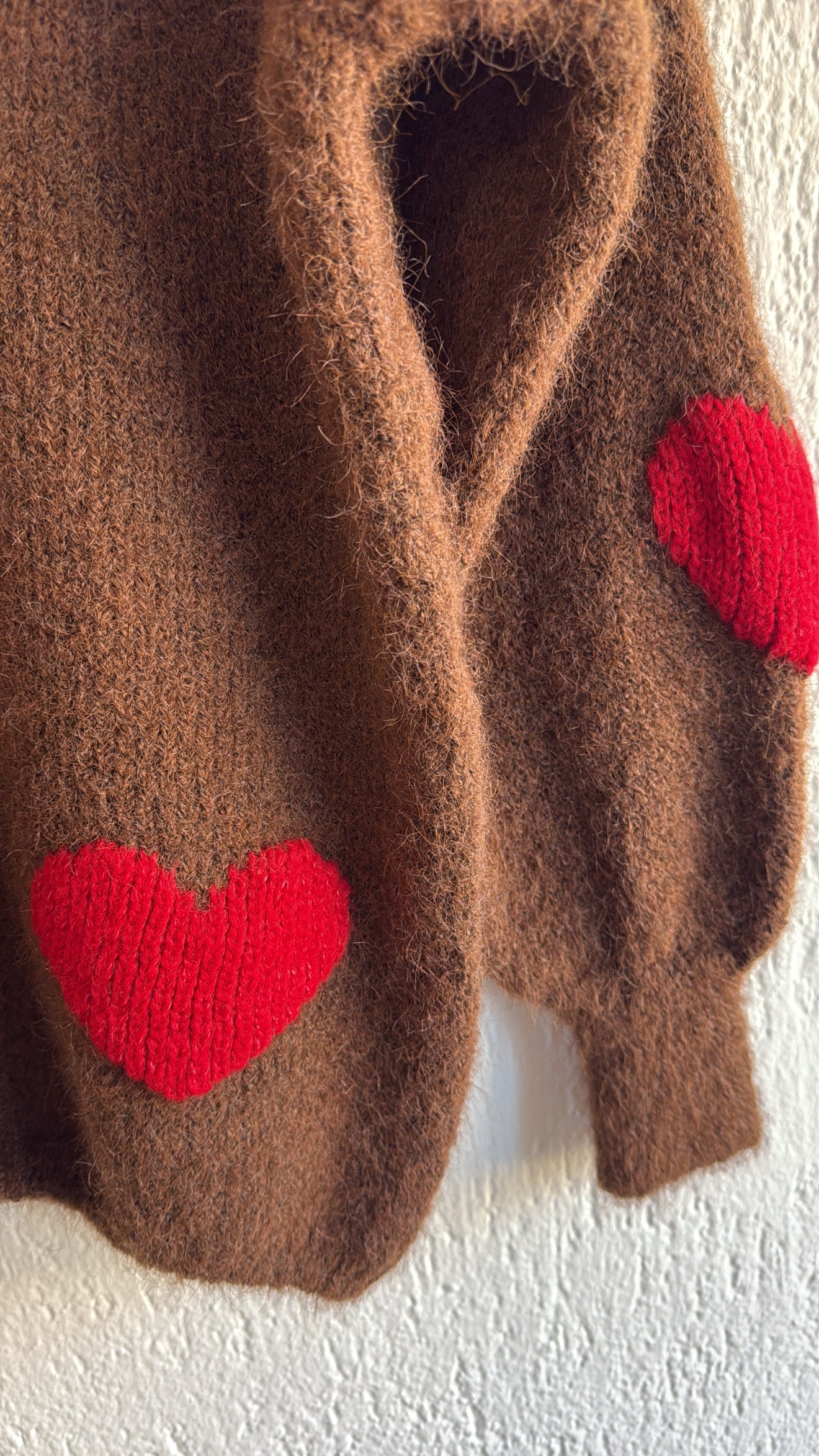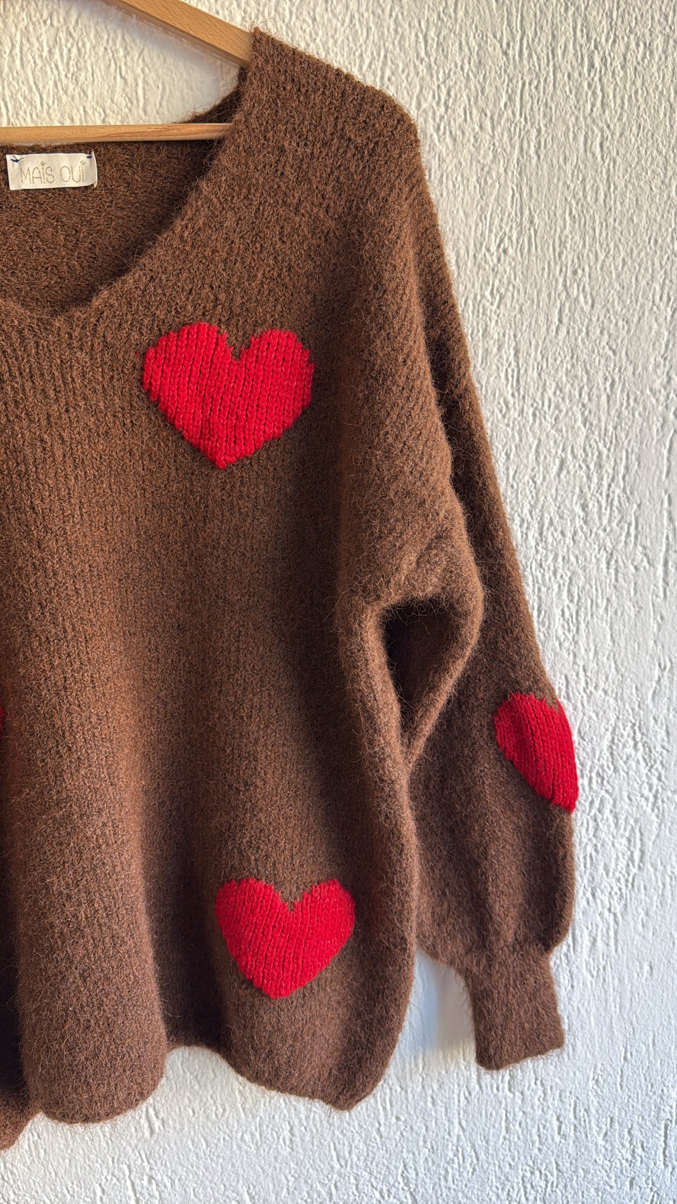 Maglia morbidissima con cuori rossi sul davanti e sulla manica.
