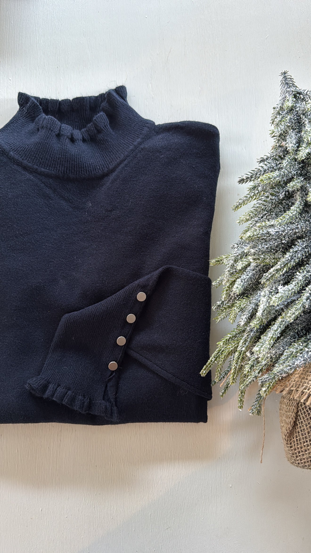 Manica lunga con una fila di bottoncini in metallo e polsino con piccola rouge.