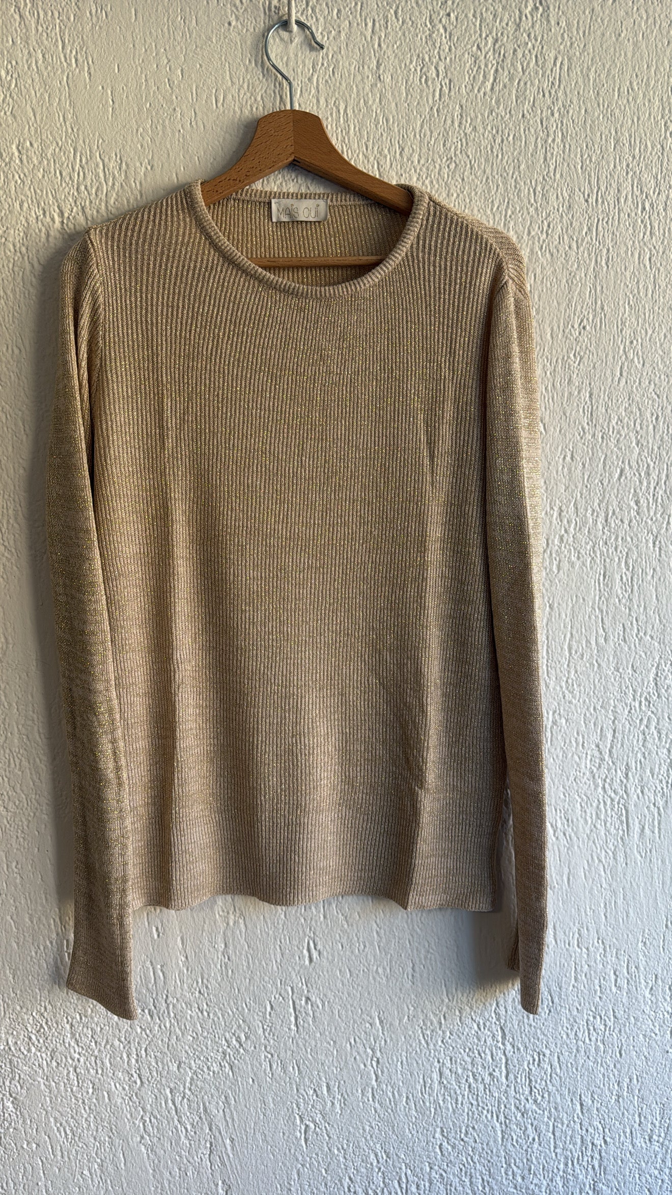 Sottogiacca girocollo in tessuto di maglia glitterato.